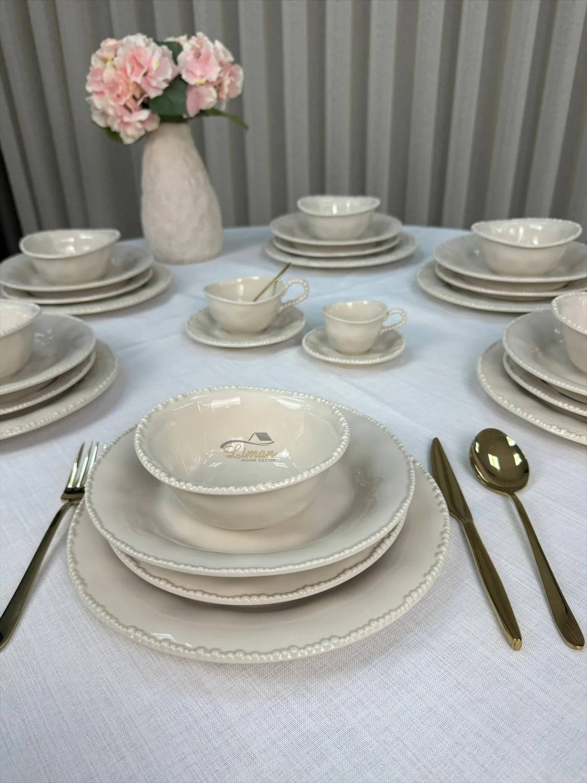 Laat je tafeldekking spreken met de tijdloze charme van Parel Beige – waar stijl en gebruiksgemak hand in hand gaan.