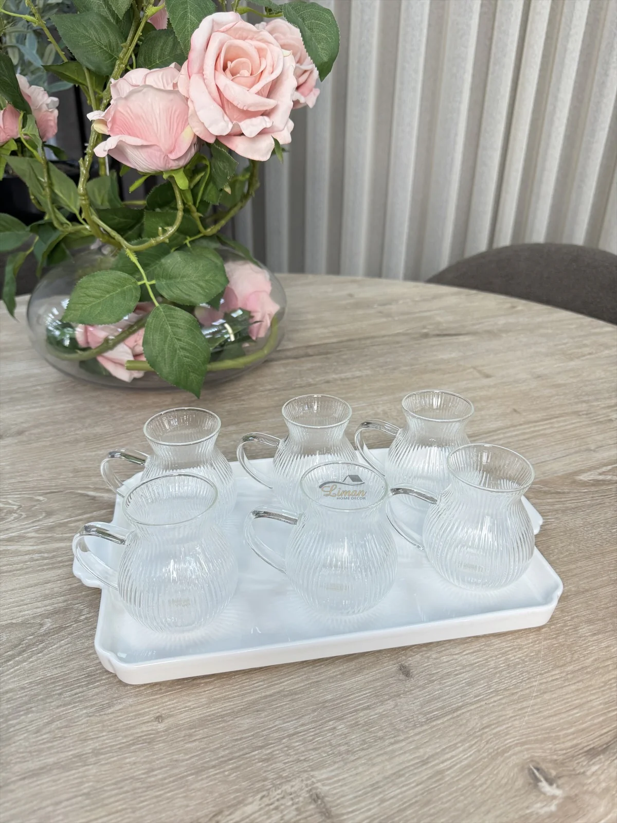 -65%Ribbled Tombik Borosilikat Theeglazen met Handvat 6 Delig 200 ml—